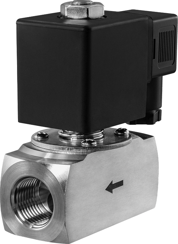 Клапан соленоидный нормально закрытый непрямого действия с поршнем для управления потоком пара в трубопроводе