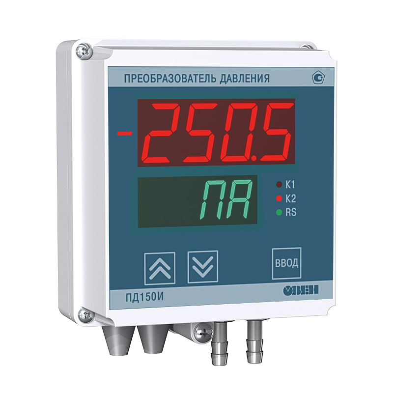 Управляющий тягонапоромер, тягомер, перепадомер ОВЕН ПД150И представляет собой преобразователь давления с двумя силовыми реле и масштабируемым выходным сигналом RS-485 Modbus RTU или 4…20 мА. Высокоточный сенсор с открытым кремниевым кристаллом позволяет измерять давление неагрессивных к кремнию газов, в том числе горючих (метан) и дымовых (топочных).